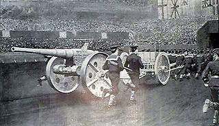 With the displays of field gun drills now a firm favourite, with the audiences at the Tournament, the first competition was staged in May 1907. Two gun crews of eighteen men from the commands of Portsmouth, Devonport and Chatham took part in the first competition.